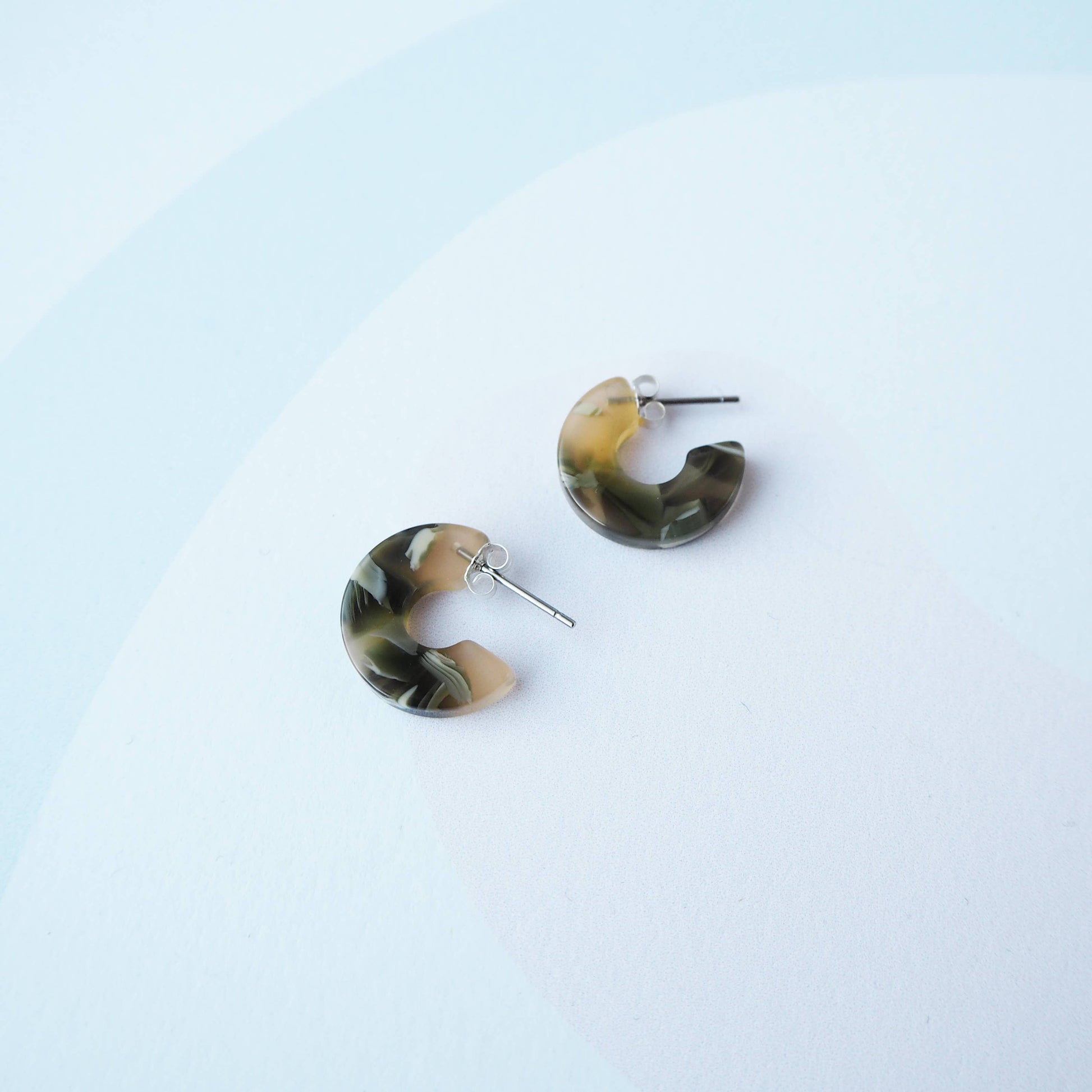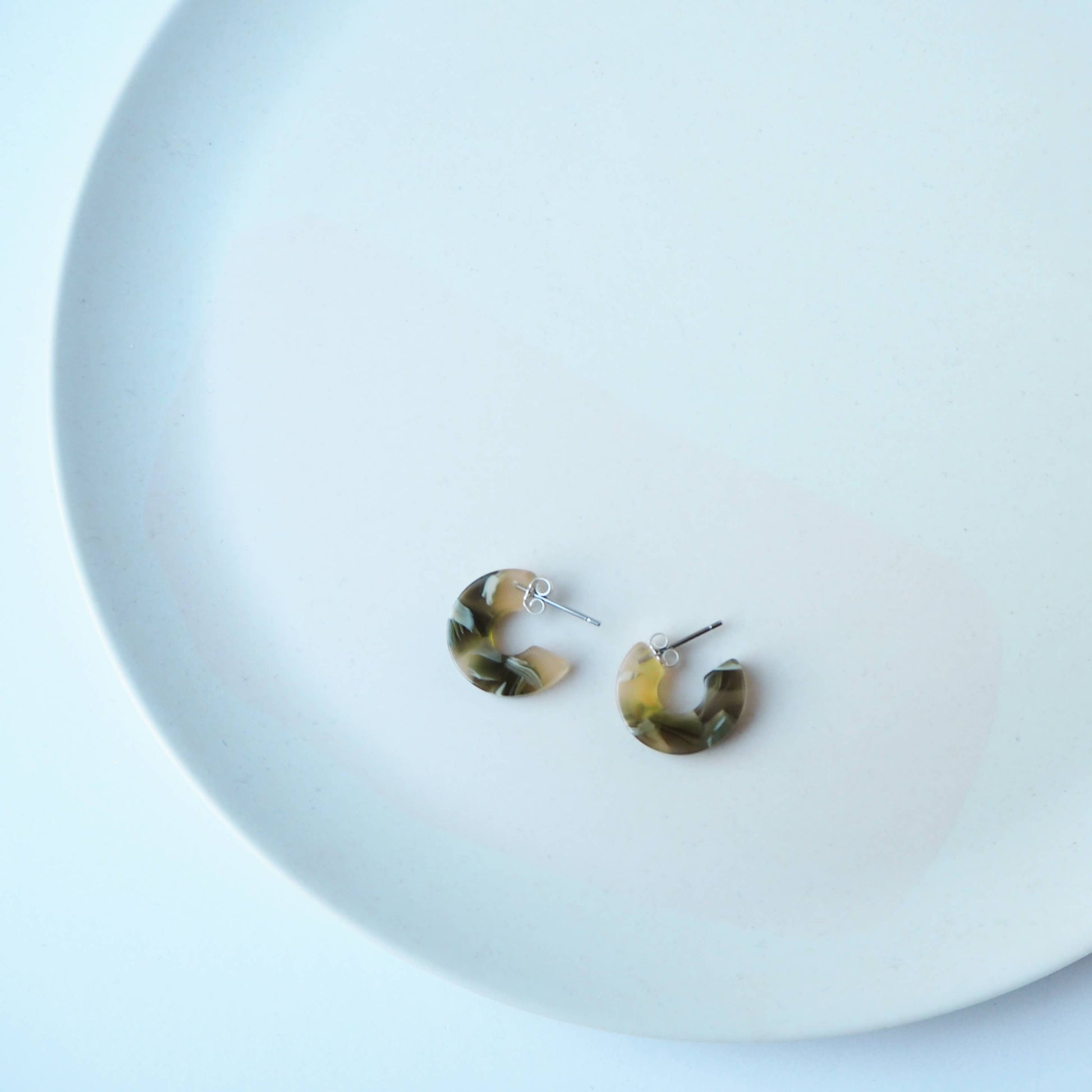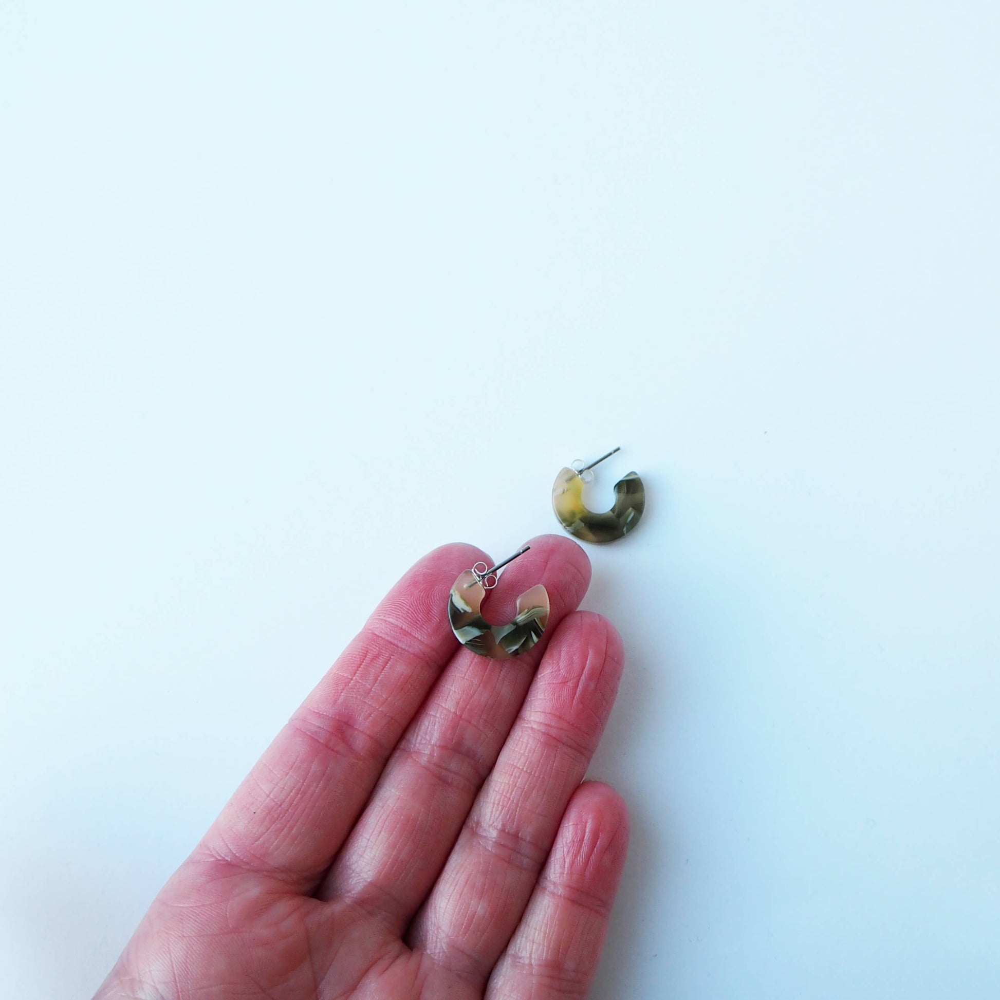 Chunky tiny acetate hoop earrings in a pretty green mix.