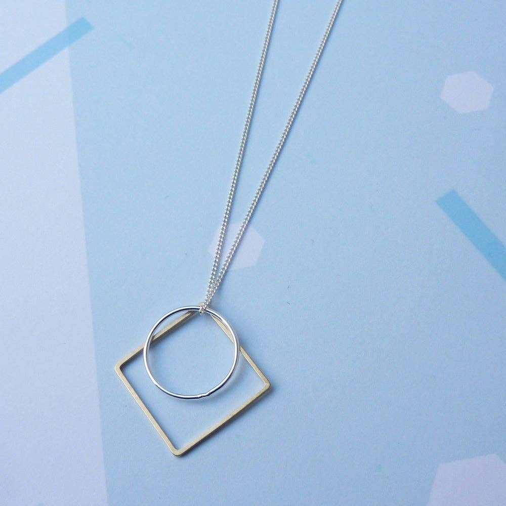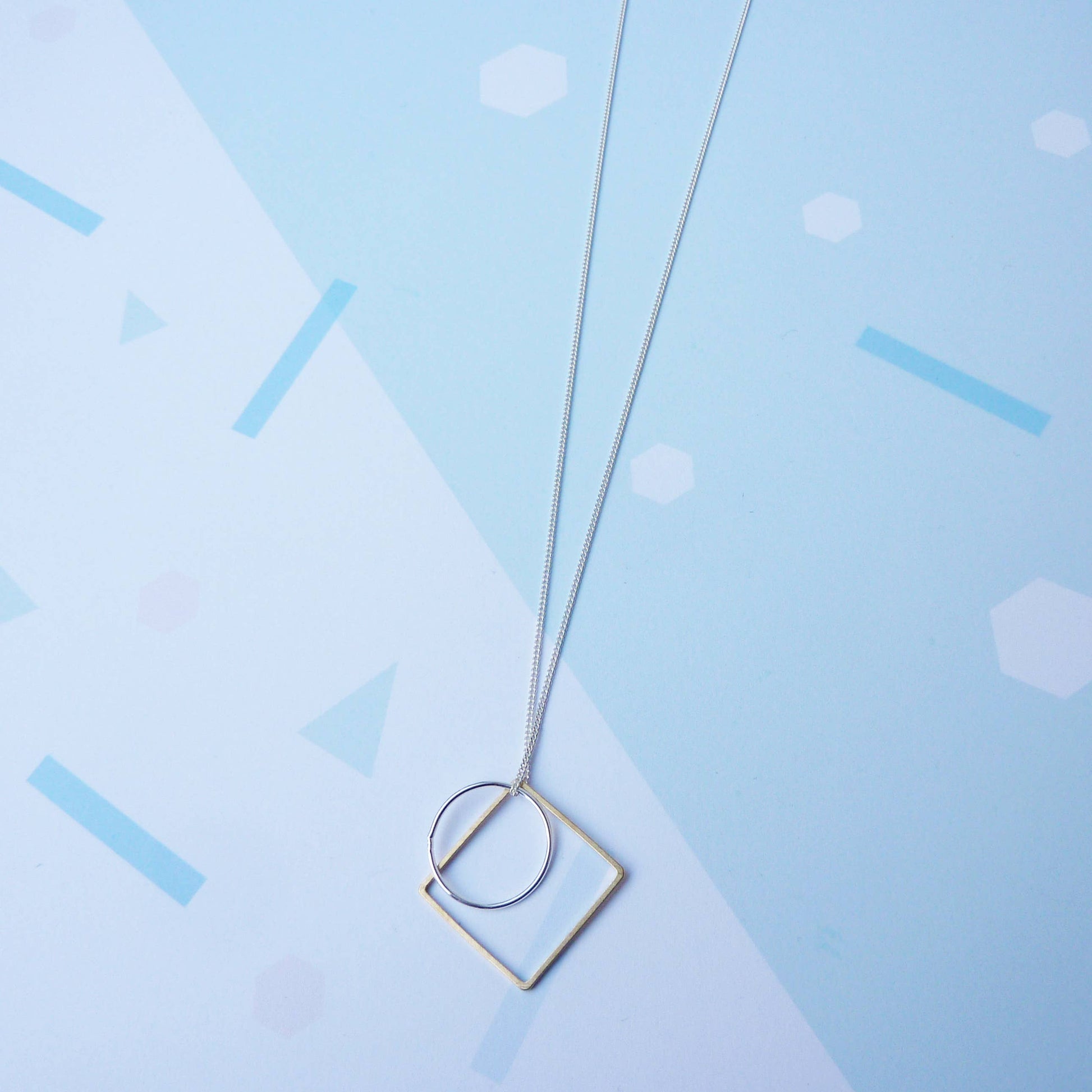 Sector sterling silver necklace with gold colour and silver geometric charms.