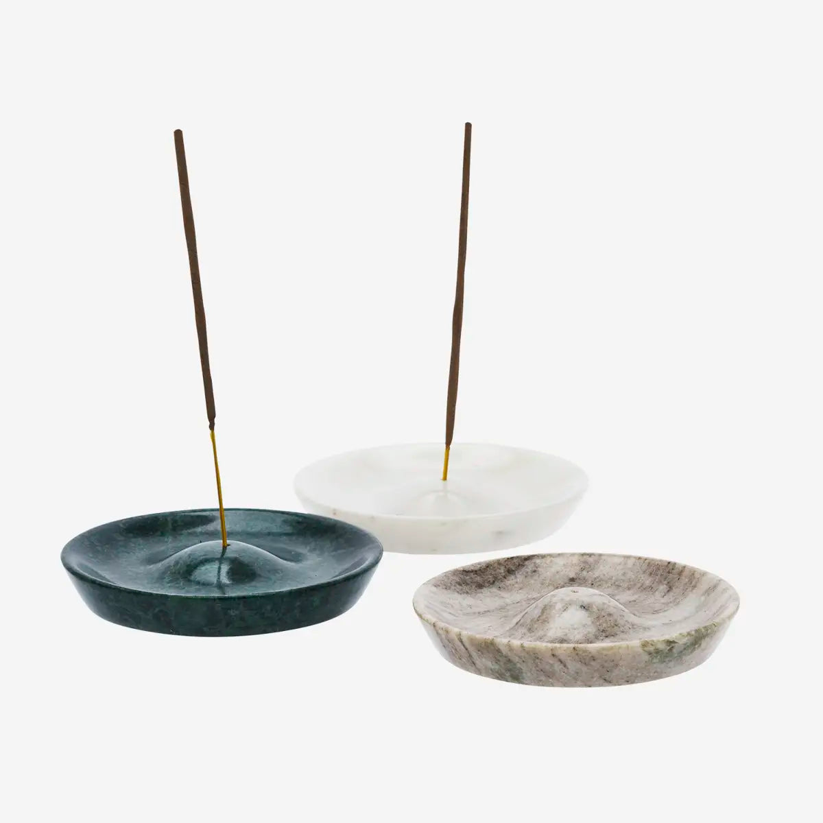 Hand-carved from natural marble in India, this holder is designed for durability and functionality. The natural stone may exhibit variations in color, making each piece unique. Its round shape and smooth finish provide an elegant way to enjoy incense, while the natural marble ensures longevity and a classic appearance.