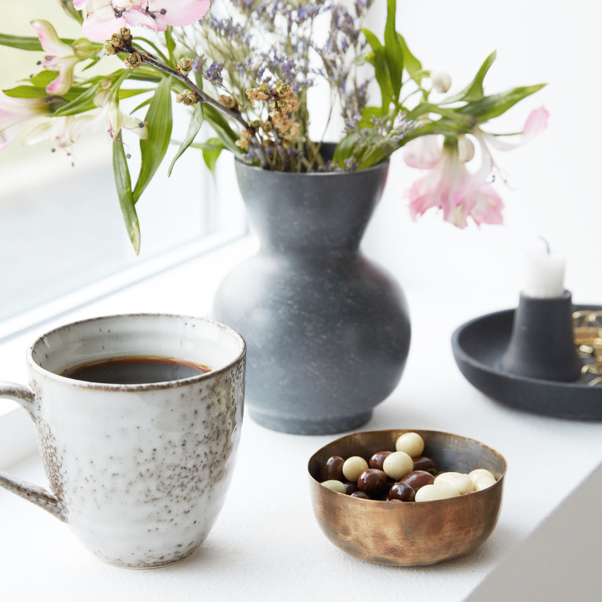 A rustic style mug in blue/grey by House Doctor. This is a lovely, stylish way to present your hot drinks. The cup has a nice, rustic glaze that exudes a raw and authentic nature. The glaze is in grey and blue tones, which enhances its raw appeal.