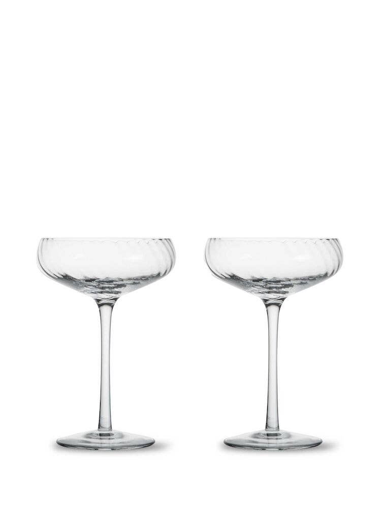 The Opacity champagne coupe is designed for the perfect experience - on the table, in the hand, and when you drink. It's a thin and delicate champagne coupe with a beautifully twisted glass pattern in clear glass. It's also ideally used for dessert or morning juice for a more festive feeling. A design that strikes the perfect contrast between luxury and boldness. Designed by Byon Studio. Comes in a 2-pack in a Byon box.