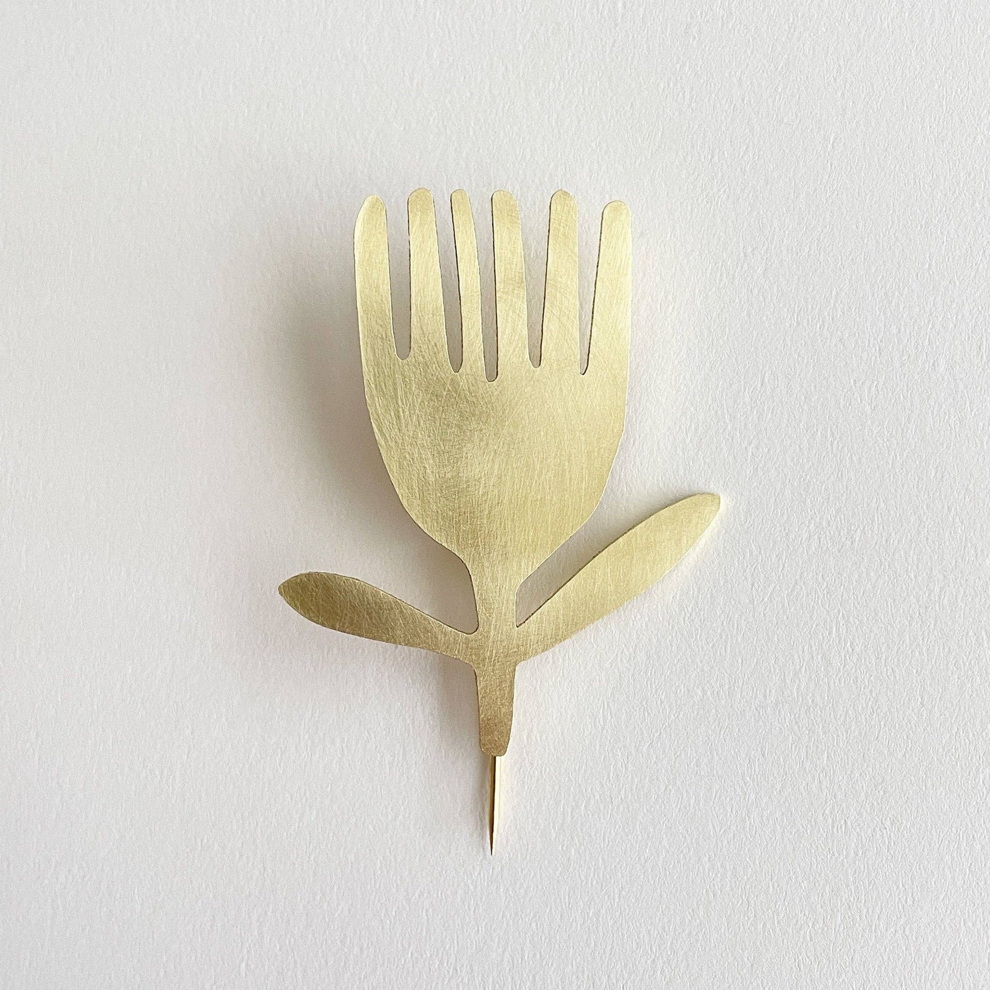 Crafted in brushed and waxed brass, this pin brooch has a gold plated stick pin and protector and is presented in a beautiful Tom Pigeon white sliding box.